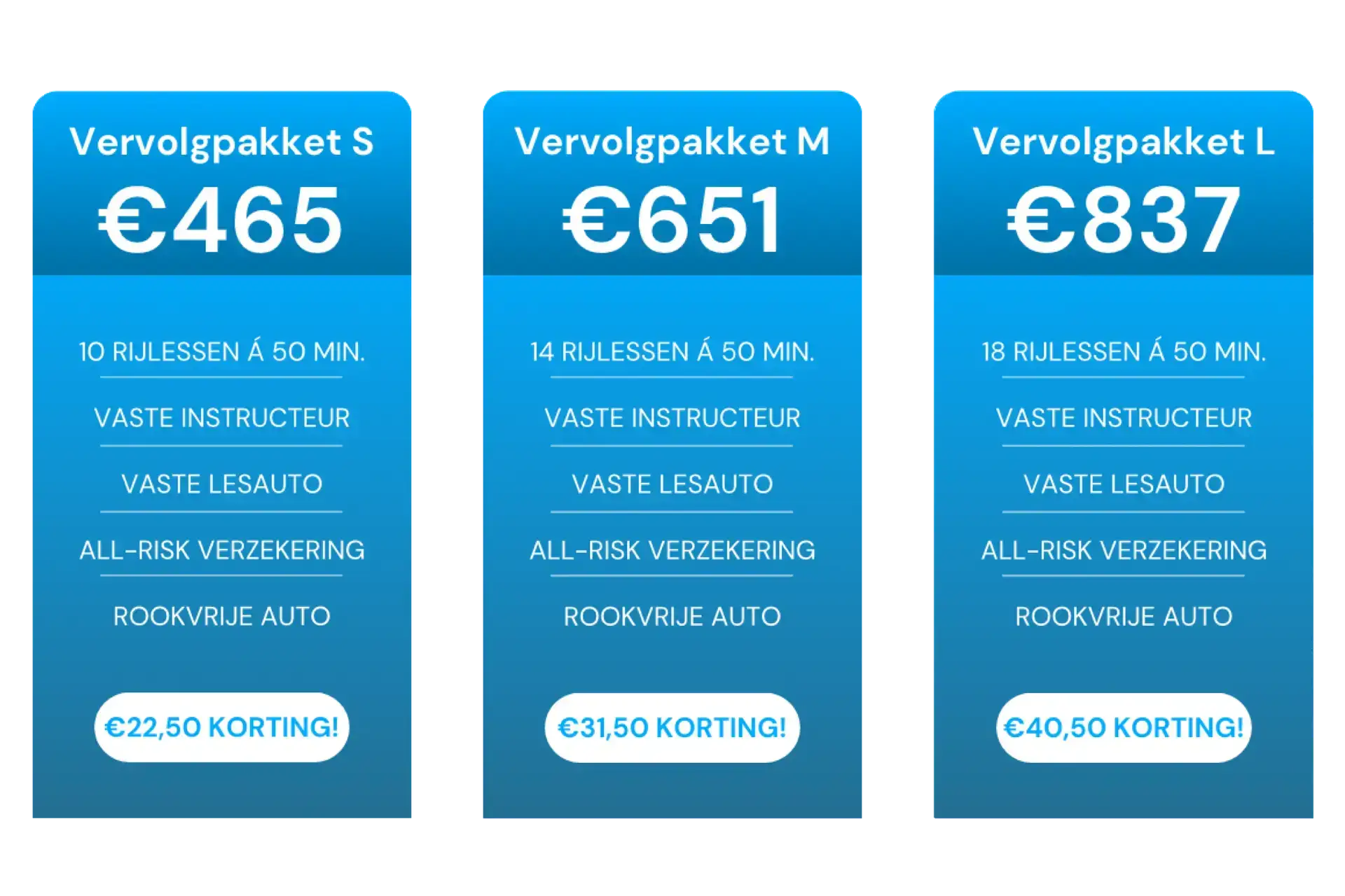 Super scherpe prijzen! Heb je je theorie al? Dan gaat de Online Theoriecursus er van af en wordt je Pakket €50,- goedkoper!